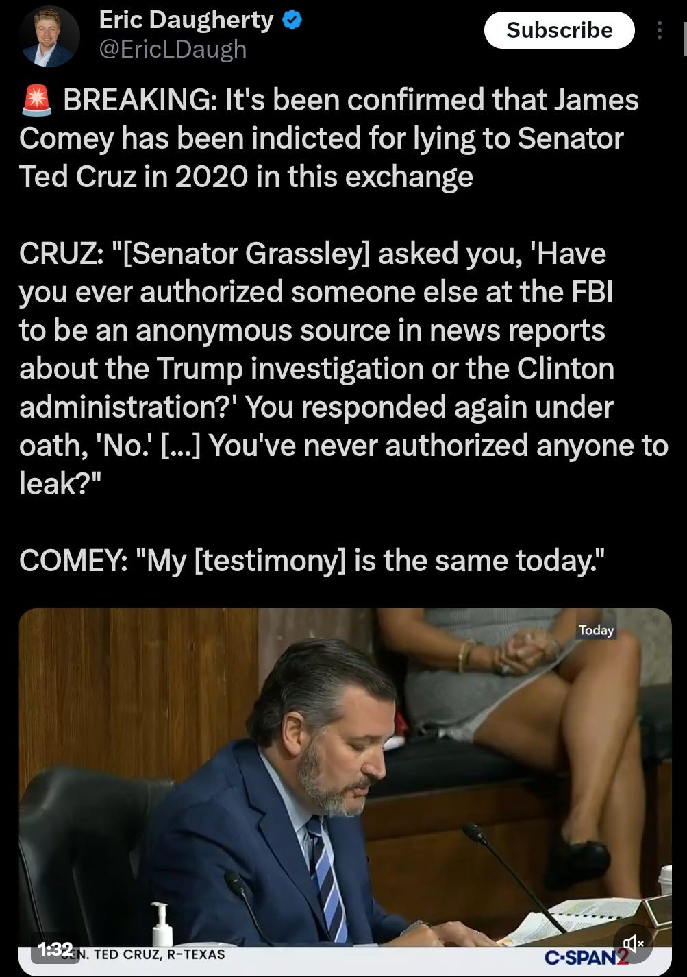 Comey Indicted for LYING to Sen Cruz in THIS 2020 Exchange